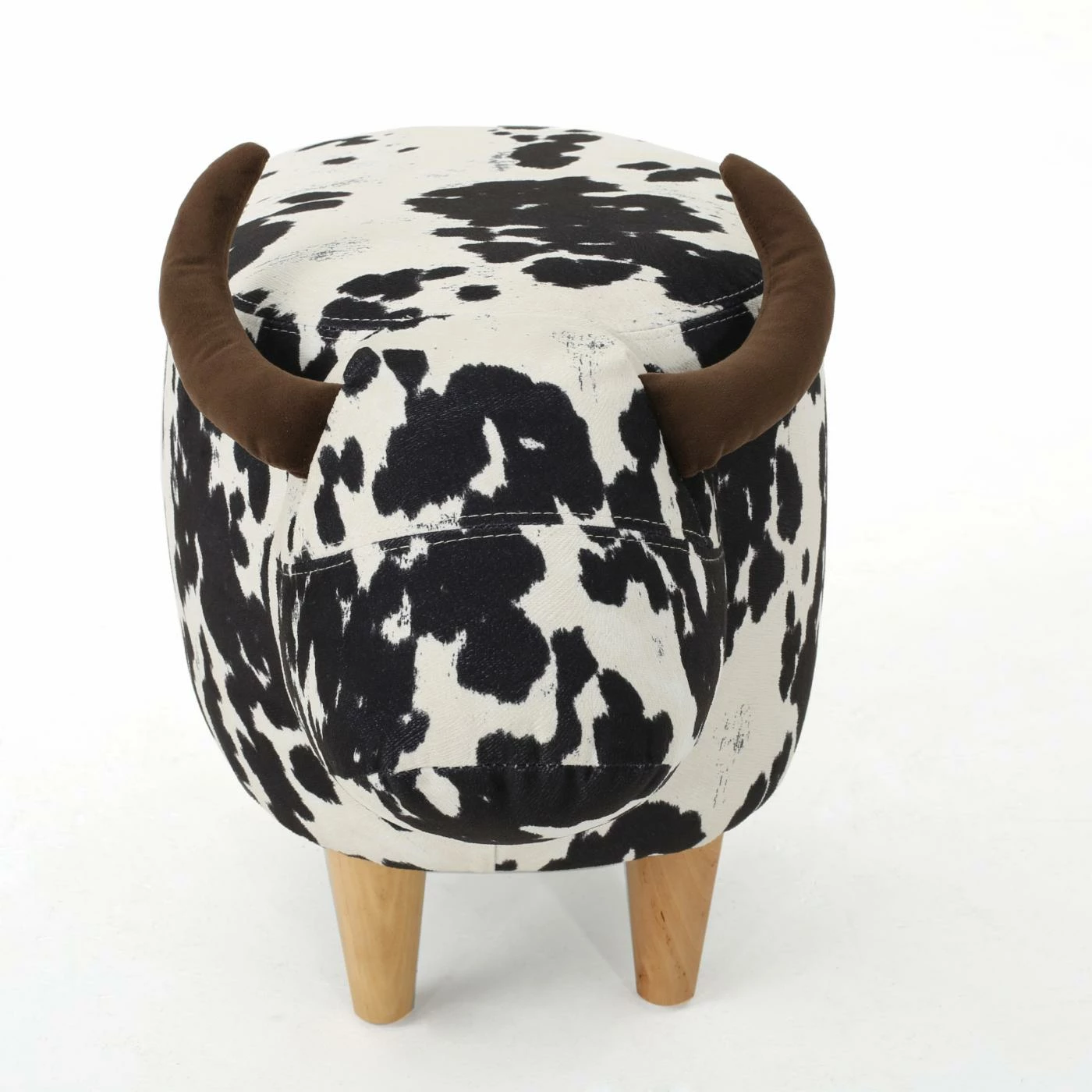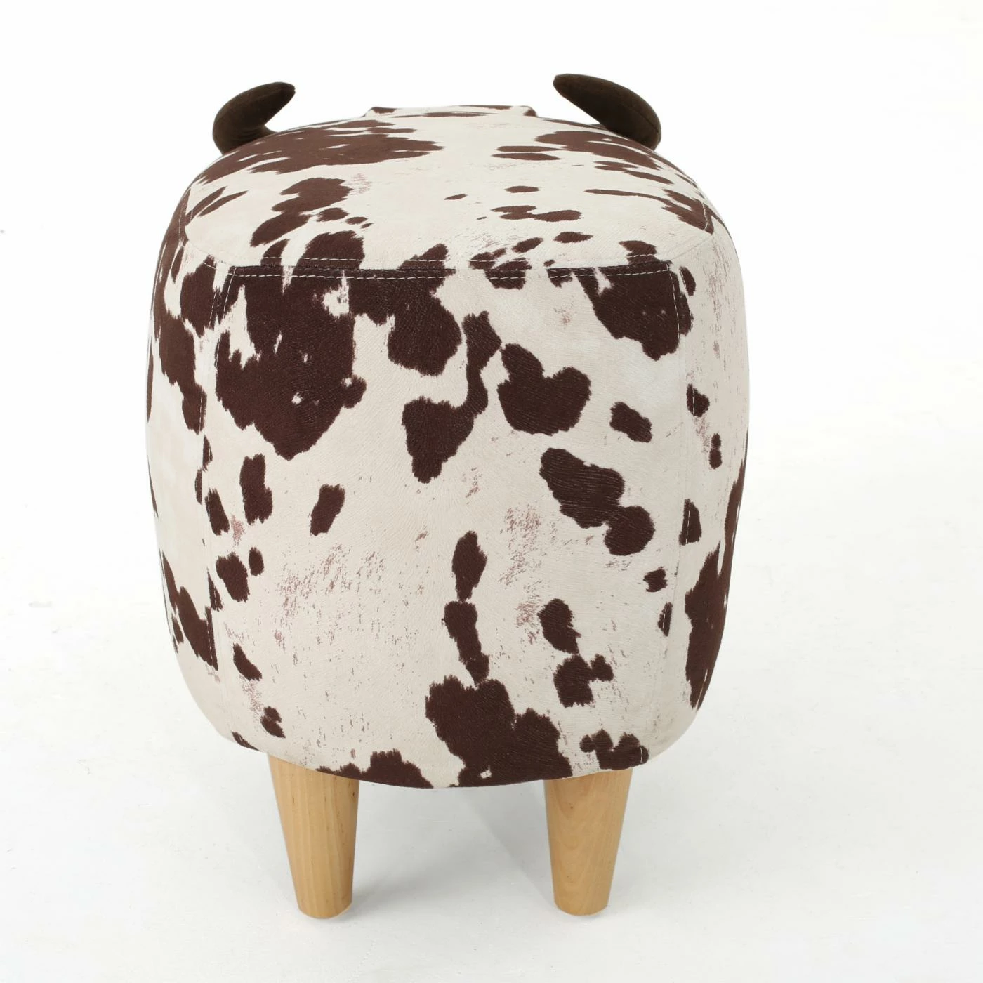 Guests are sure to grin when they see the Bessie Velvet Cow Ottoman in your farmhouse or Southwestern seating area. The velvet-upholstered ottoman looks like a cow complete with a tapered snout and two horns. For sturdy support, the ottoman is positioned on solid birch wood feet.