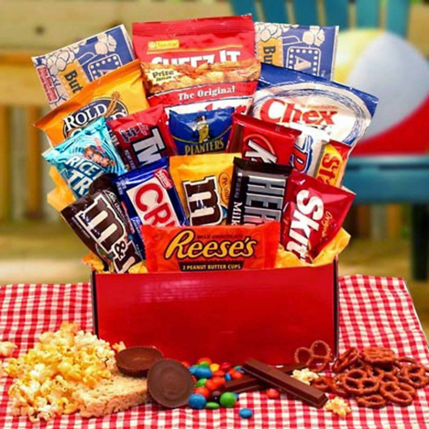 Americans don’t need a reason to indulge in sugary and salty snacks, and you don’t need a reason to the send the All American Favorites Snack Care Package to someone deserving. Perfect for any occasion, like a day ending in “y,” this gift box is filled with comforting, irresistible treats to satisfy every craving. Got a coworker in need of a snacktime pick-me-up? This is a great executive or corporate gift basket! Or welcome that new neighbor and make it a new-home gift basket!