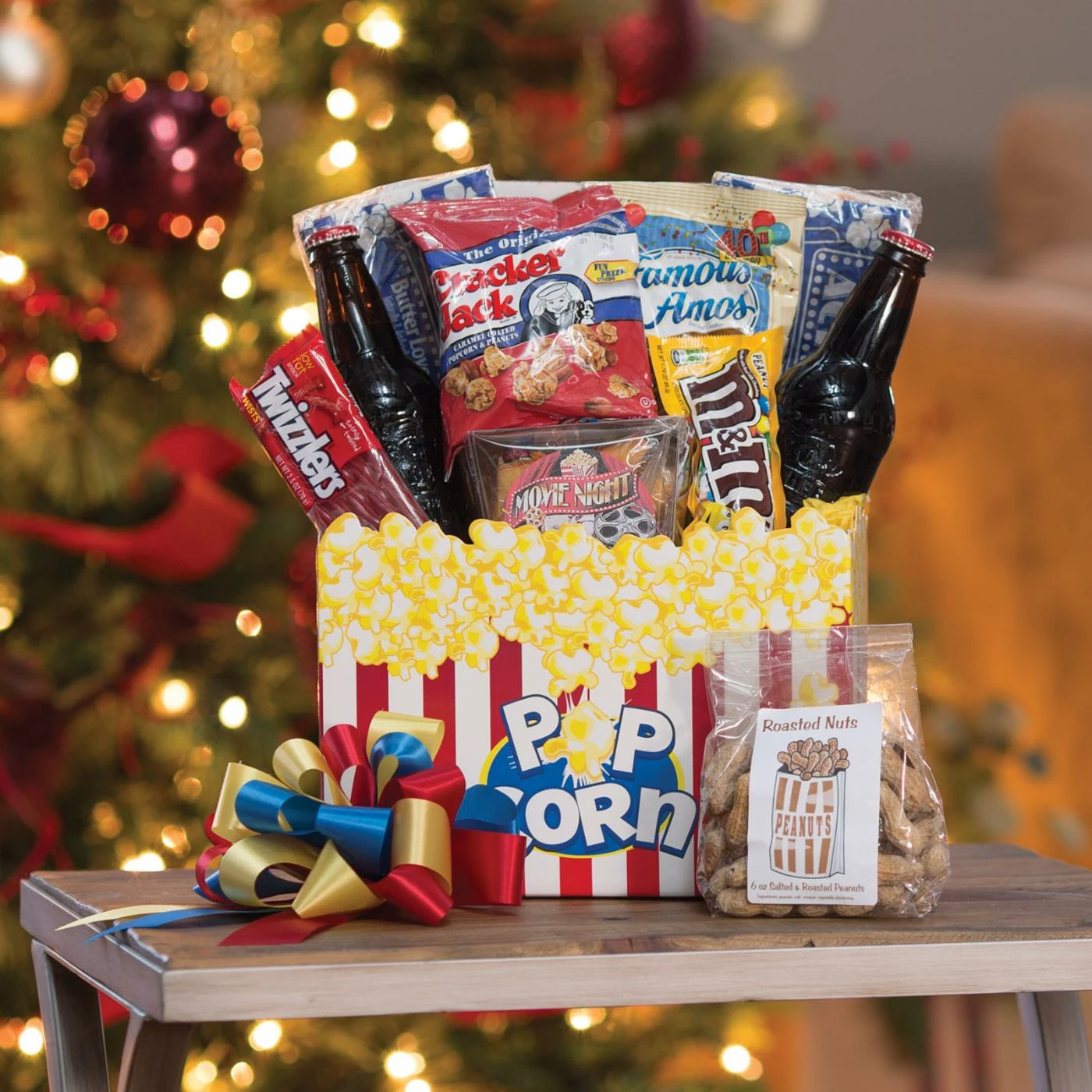 A great surprise to any movie buff, the Movie Night Mania Gift Box β with 10.00 Redbox CreditΒ comes with all the ingredients for an amazing evening indoors! This movie-night gift basket features snack-time favorites like Cracker Jacks, Twizzlers, classic root beer, buttery popcorn, and much, much more. There’s even a batch of fortune cookies with movie trivia hidden inside. Most impressive of all is the $10 Redbox credit! Yes, this movie gift basket comes with the movies, too, in the form of a Redbox digital credit that can be used for instant streaming of your favorite flick. Perfect for college care packages.