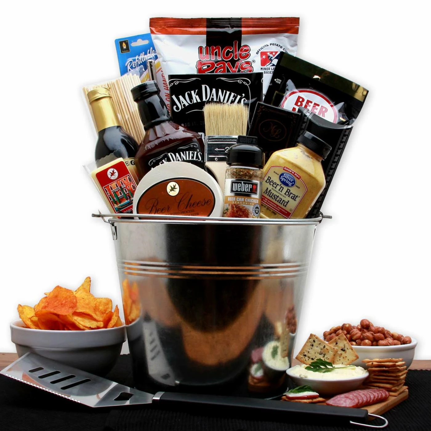 If your friend or family member loves to fire up the grill on the weekend, the Gift Basket Drop Shipping BBQ Lovers Gift Pail is a thoughtful gift. This gift basket features BBQ sauces and marinades, along with grilling tools, that allow your recipient to infuse new flavors in favorite grilled creations.