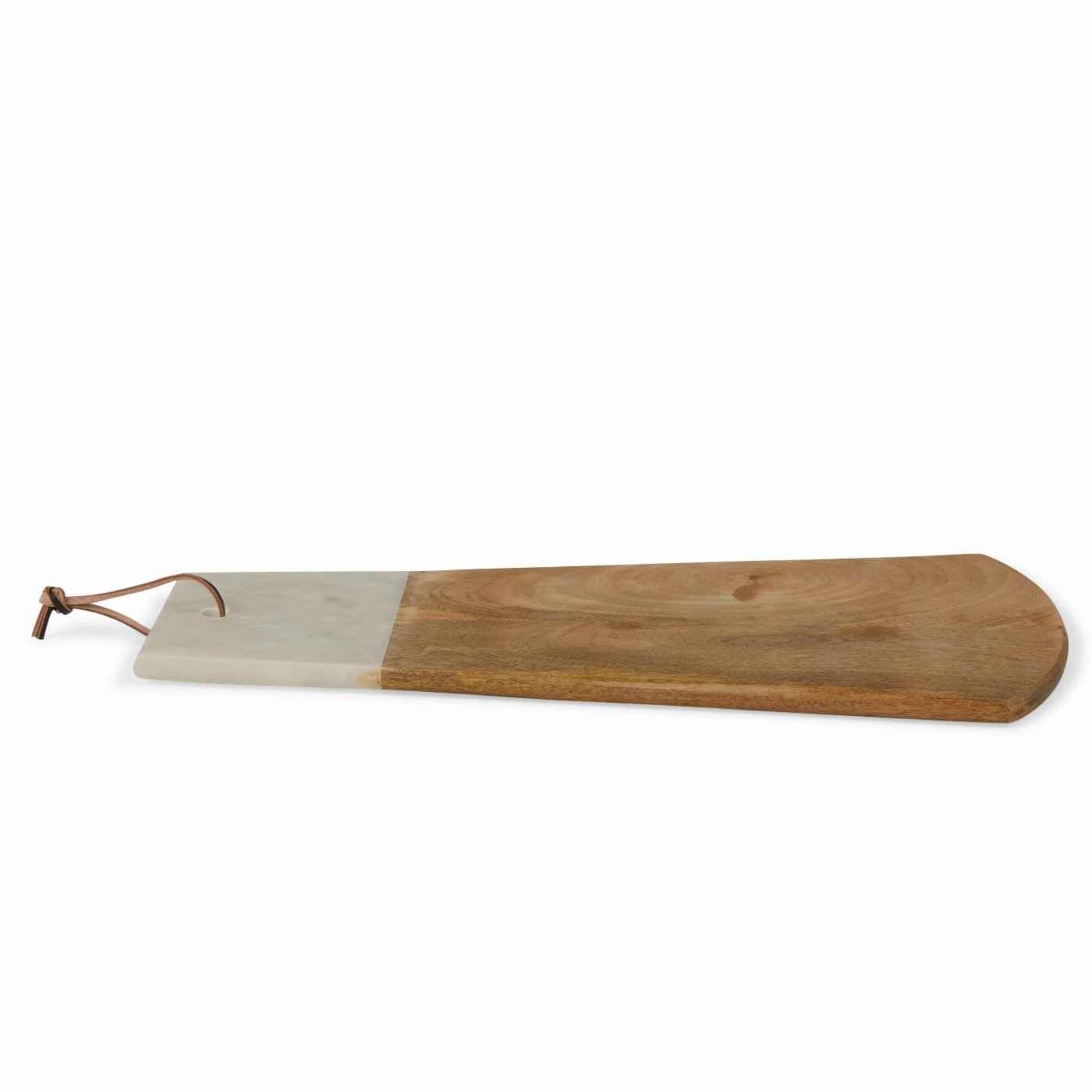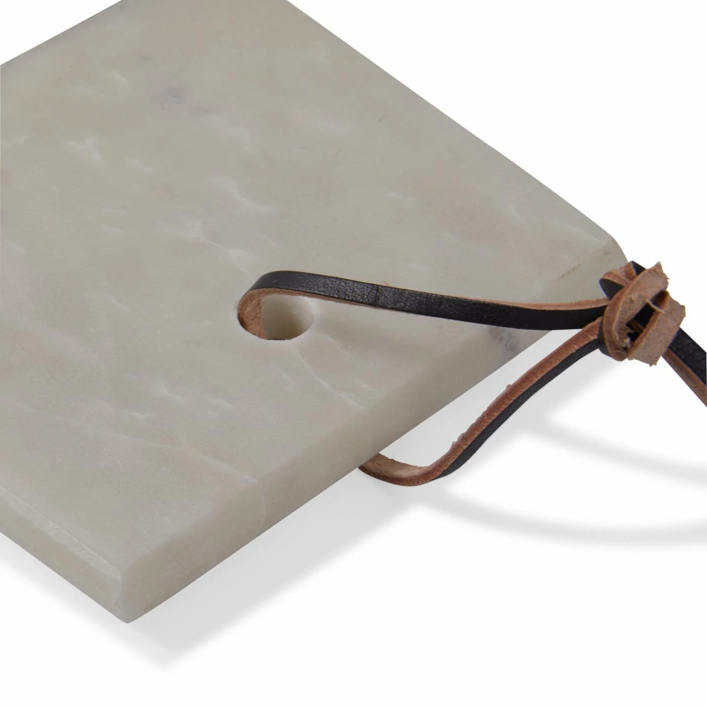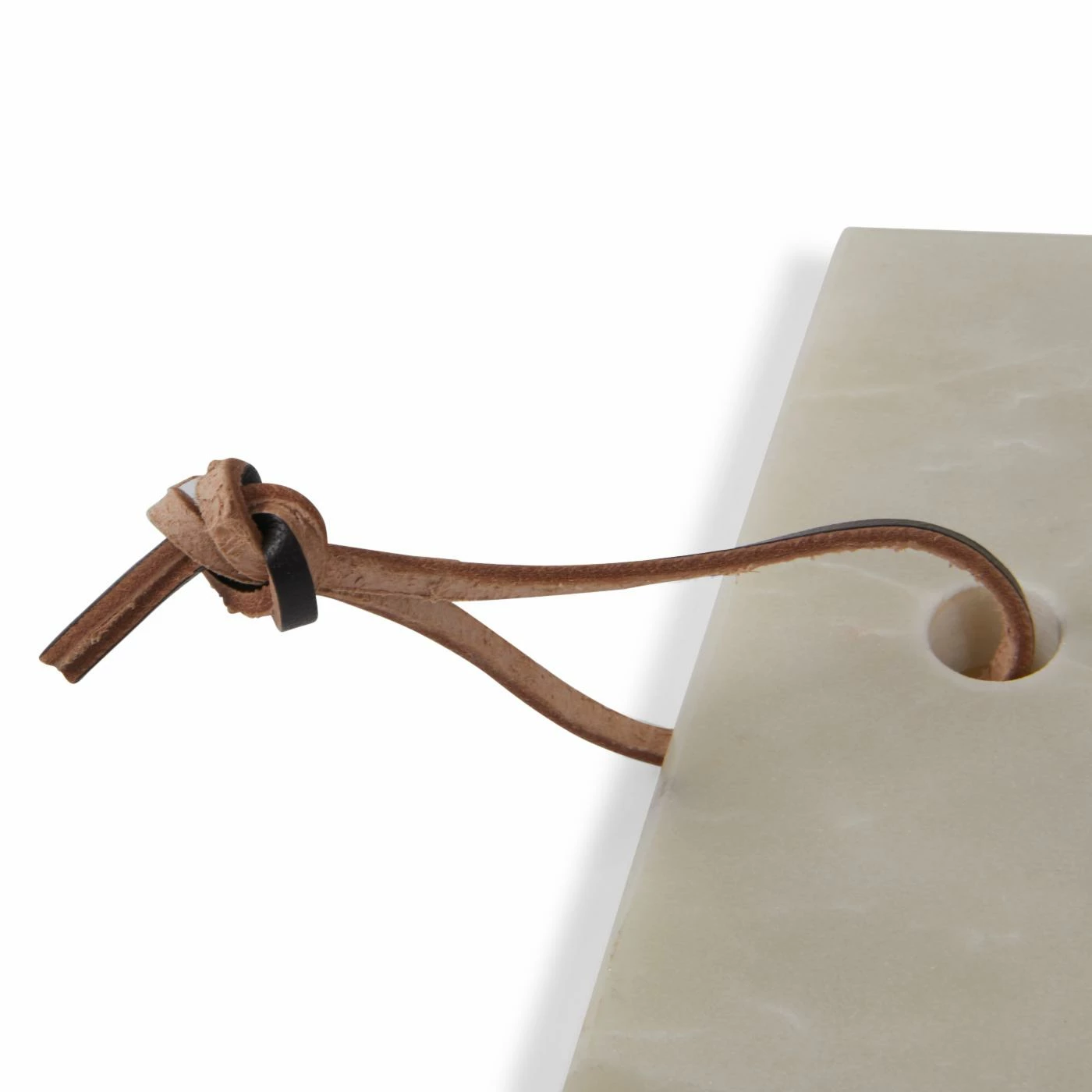 Outfitted with a leather strap at one end, the Marble & Acacia Wood Cutting Board is designed for storage and display on your kitchen wall. This cutting board is crafted from marble and acacia wood, creating a look that’s brimming with personality. Use this cutting board to prepare veggies for meals or serve crackers and cheese at family gatherings.