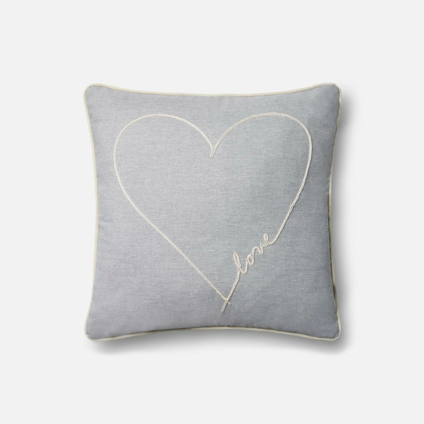 The ED Ellen DeGeneres Crafted by Loloi P4070 Grey Throw Pillow Cover gives your home a warm, welcoming finishing touch. This pillow cover is made from 100% polypropylene. The gray background is accented with an embroidered heart and piped trim in ivory. For best care, spot clean or dry clean this pillow cover as needed.
