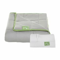 Reduce stress and refresh your mind and body with the Weighted Blanket with Cotton Cover by Sleep Yoga. This blanket is filled with plush cotton material and weighs a total of 18 pounds. The soft feel and heavy design help alleviate anxiety, while the light gray and green hues make it easy to match this blanket to any room in your home. Easily keep this piece looking and smelling fresh by throwing the included duvet cover in the washing machine and tumble drying low as needed.