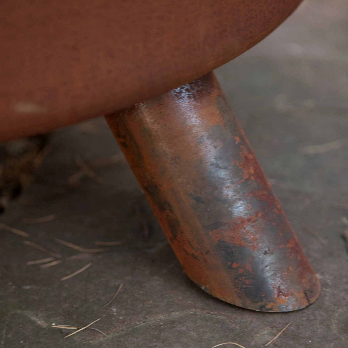 Take the chill off, cook an outdoor dinner, or both with this sturdy, metal-bottom, three-legged fire pit. Hand-crafted of cold-rolled steel, this fire pit is heavy-duty. Comes complete with a BBQ grill insert for cooking, a spark arresting safety screen and poker for stirring the coals. Attractive rust patina finish. No assembly required. Free fire pit cover is included!