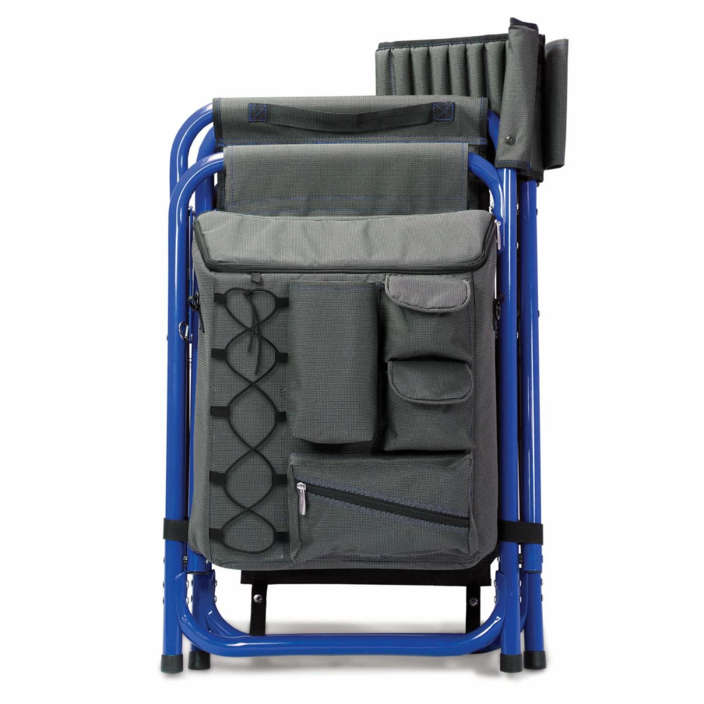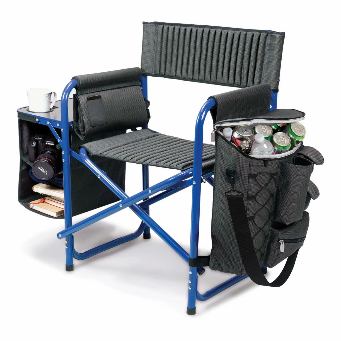 The Picnic Time Fusion Directors Chair – Dark Gray with Blue is perfect for a summer adventure outdoors. The chair includes a sturdy aluminum frame, with thoughtfully low side-bars to prevent sinking in soft ground, and ribbed padding on the back and seat for added comfort. Unfold the chair at your campsite and crack open a beer from the side-mounted cooler bag, and use the molded cup holder in your table tray between sips. Padded backpack straps make this not only easy to use, but easy to carry. You’ll be foraging out on your own every weekend!