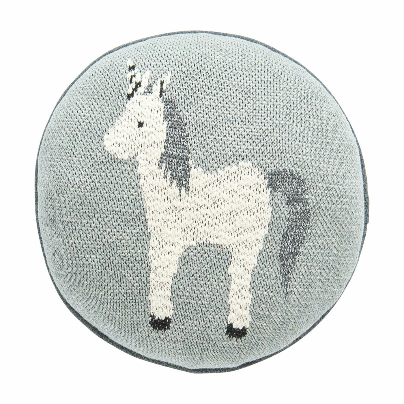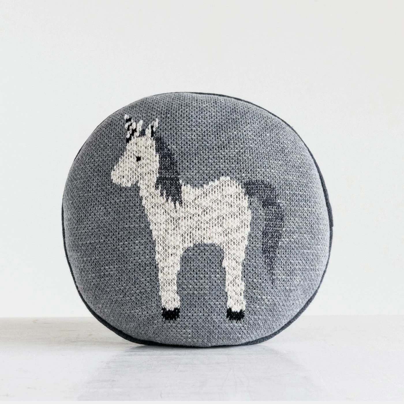 Any room in your home could do with a little extra magic, and the 3R Studios Unicorn Cotton Knit Pillow is the perfect addition for this. The gray background on this round pillow sets the stage for a white unicorn with dark gray fur and black hooves and horn. A thick gray cord lines the edge and completes the look. This pillow is constructed with a cotton cover and fill. The cover has a sewn closure and may not be removed. It is recommended to spot clean this pillow whenever you need to.