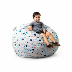 The Brazil Furniture 4-Button Back Child Recliner – Navy Deer would look right at home in a hunting lodge if not for its adorably small stature. Expertly constructed, this child-size recliner features a solid oak frame with a thick foam seat, flared armrests, and a button-tufted backrest stuffed with plush fiber fill. The cotton fabric upholstery cleans easily with a damp cloth and is available in navy blue with a white deer pattern. This chair can only recline when your child is in a seated position. It is designed only for kids 3 to 9 years of age or weighing up to 90 lbs.