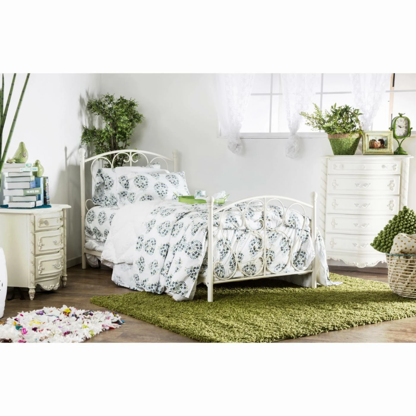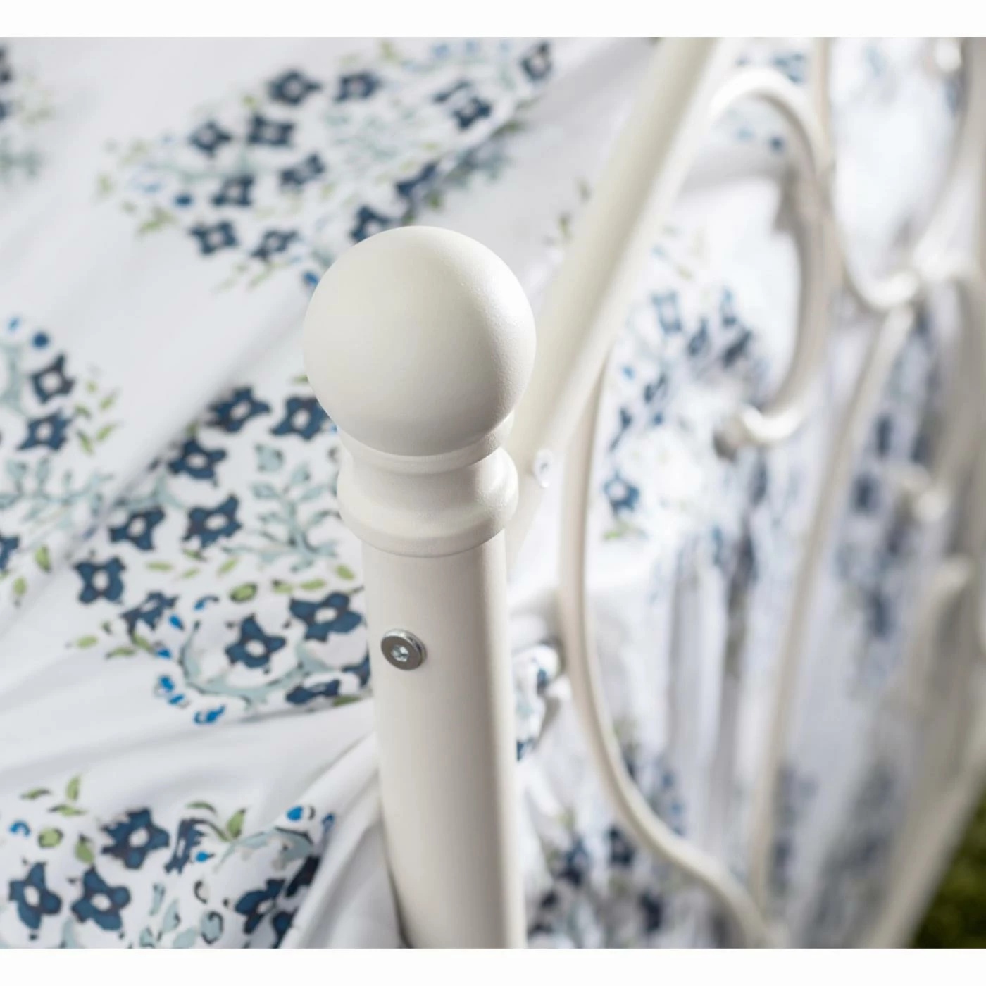 The sturdy metal frame is available in a choice of finishes. The open headboard and footboard create a light, carefree look, but not without some extra glam – she’ll love the elegant scrollwork throughout. Decorative ball finials add a fancy touch, too.