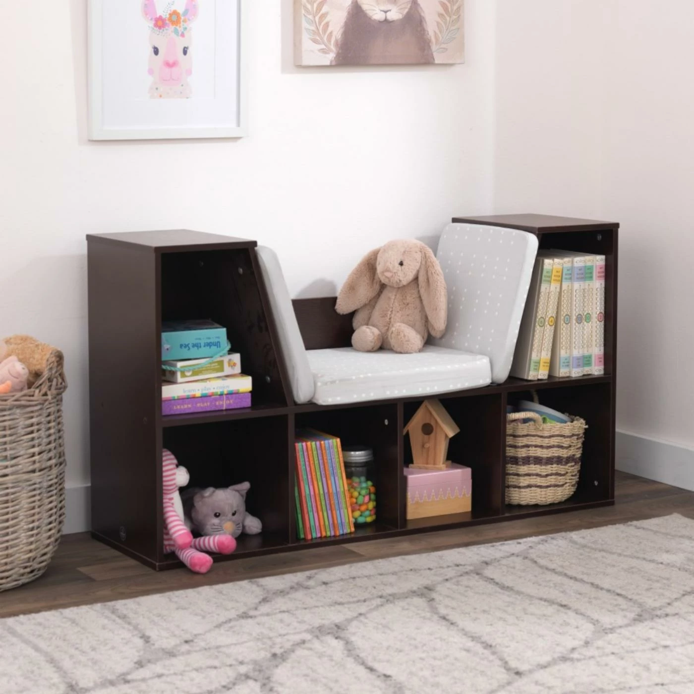 Our KidKraft Bookcase with Reading Nook gives kids a cozy spot to read their favorite stories. This fun furniture piece has plenty of storage space, and with a variety of color choices, it will look great in any bedroom. The bookcase and nook are made of sturdy wood composite and there is even extra storage on either side of the shelf for those extra treasures. Now open up a book and let your imagination run wild!