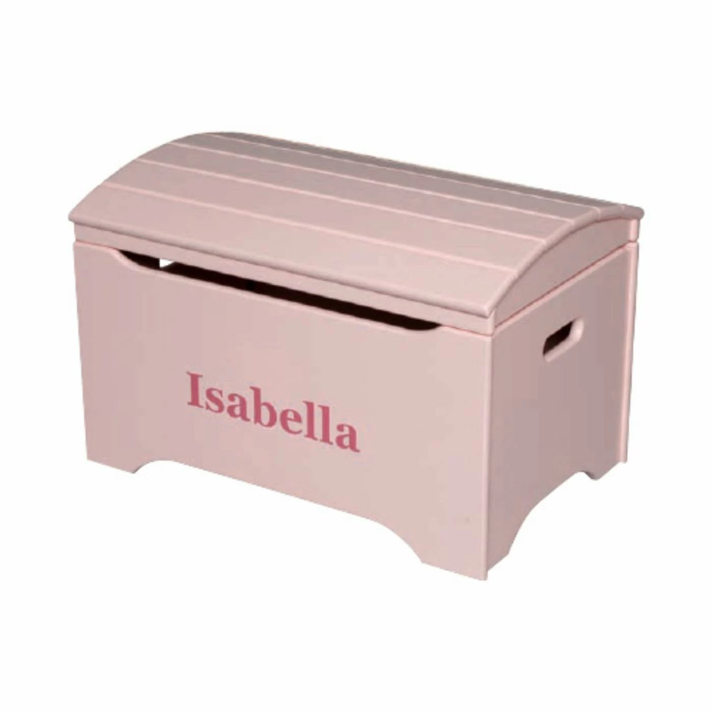 If it’s the Little Colorado Solid Wood Toy Storage Chest withΒ PersonalizationΒ – Soft Pink Finish, then you can be sure that it’s hers.Β In the face of this strong,Β wooden chest will be her name, in your choice of black, blue, green, pink, purple, red, or white text, with vinyl letters. The arch-top lid moves on smooth and reliable hardware. Some assembly is required. Dimensions: 29L x 19W x 18H inches. Product weighs 37 lbs.