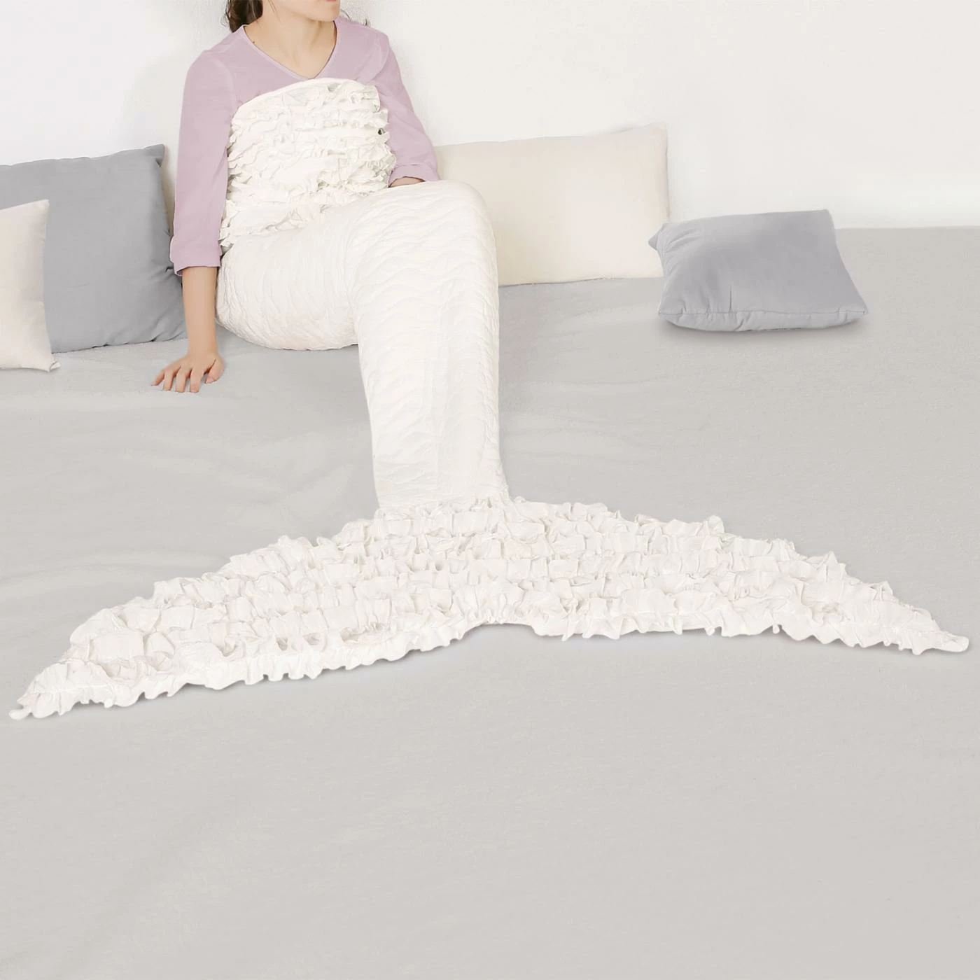 Perfect for relaxing, the Mermaid Ruffle Sherpa Throw by Lush Decor is as fun as it is functional. Made with a hypoallergenic cotton alternative, this novelty blanket features a color block pattern with dainty ruffles. Boasting a cozy sherpa lining, this blanket comes in your choice of available color options. Machine wash to keep it looking good as new.