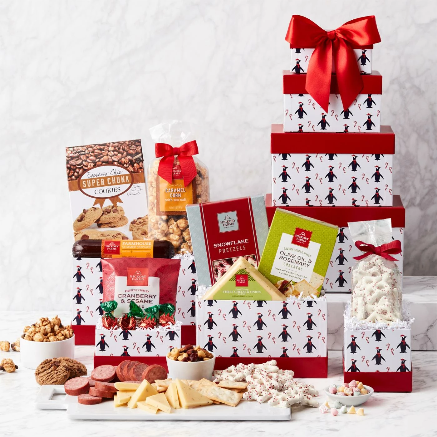 Deals ๐ HICKORY FARMS Gift Baskets Penguin Party Winter Gift Tower ๐