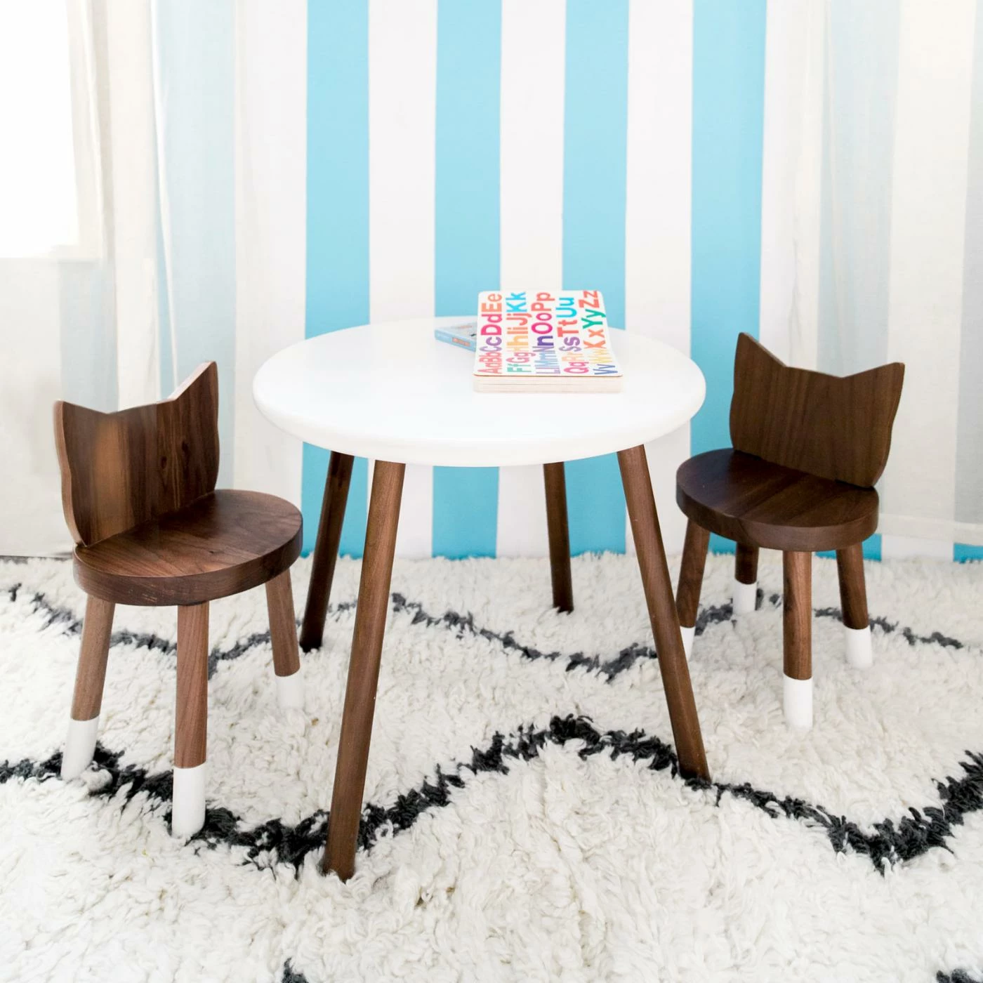 If your little one is really into the kitten theme, the Nico & Yeye Kitty Kids Chair – Set of 2 about to be his or her new favorite chair. This child-sized chair features an adorable back with the shape of a kitten head and ears. The angled legs are dipped your choice of available contrasting color to look almost like little kitten feet. Add the chair to a small craft table or to a cozy playing or reading nook.