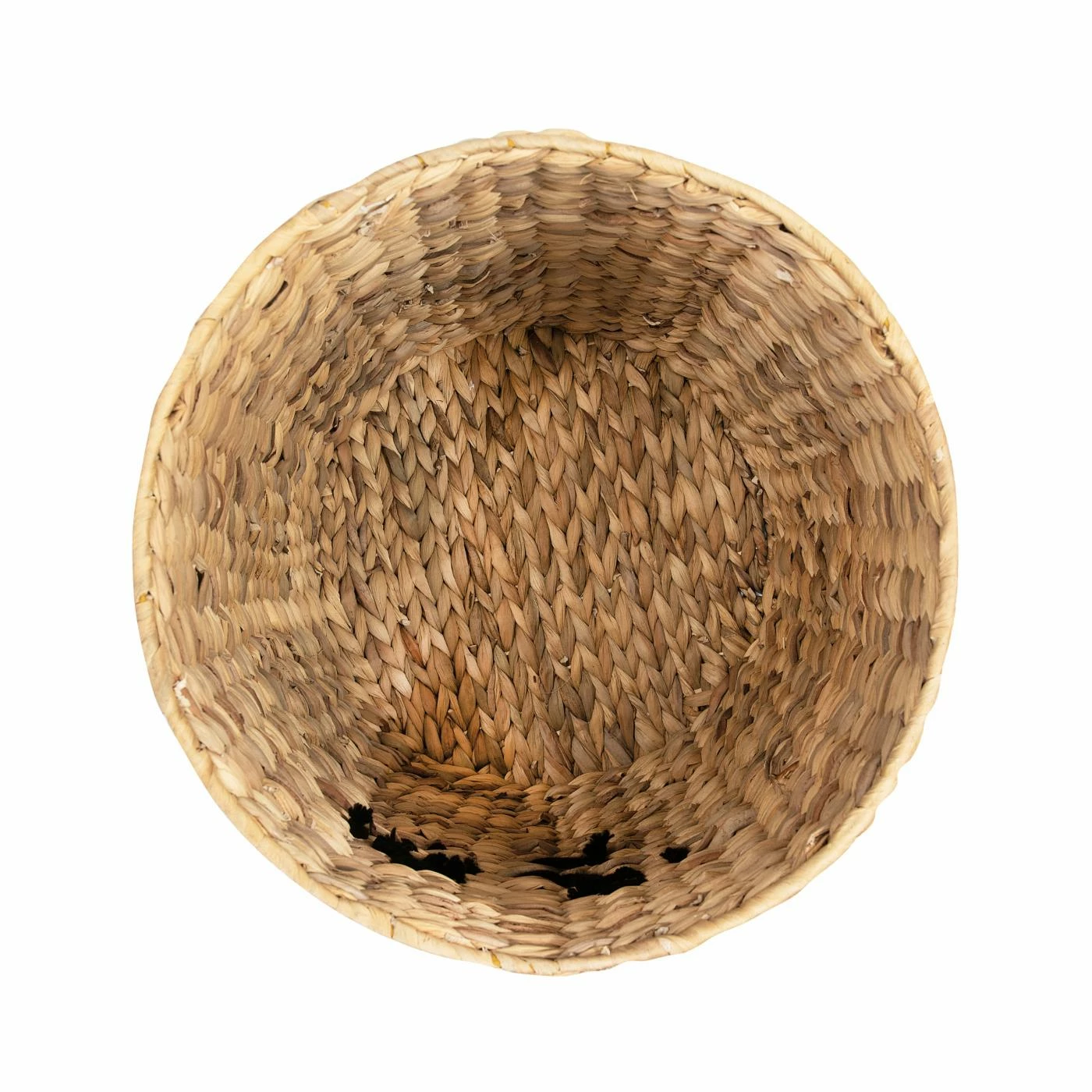 - Natural brown wicker fibers with black detail and embroidery
