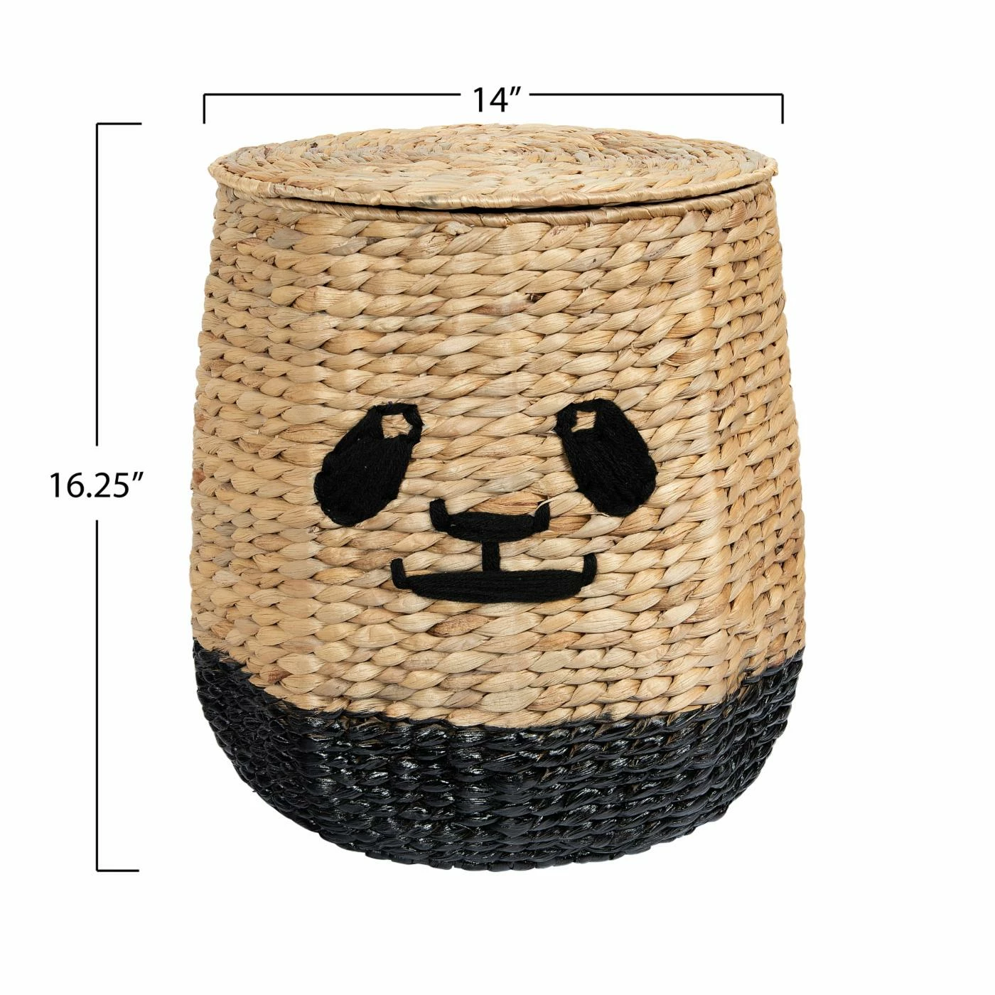 Add a little whimsy to your home with the Handwoven Panda Face Rattan Decorative Basket by Sprinkle & Bloom. This handmade baskets function as storage containers, hampers, or purely decorative items. Place one in your children’s room for them to take care of their laundry, put away their toys, or simply admire. The handwoven rattan and wicker of this basket is complemented by the embroidered panda face, which varies by product. Wipe with a cloth to clean.