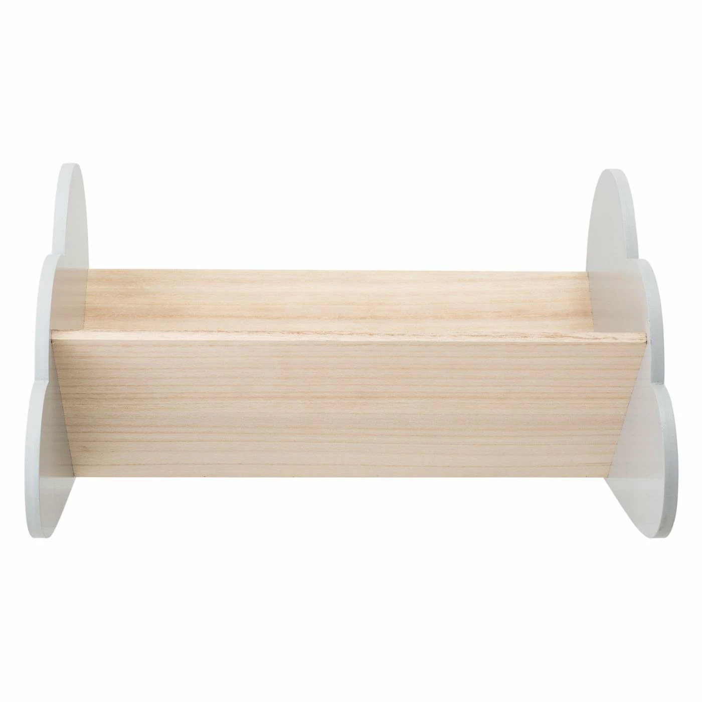 The Sprinkle & Bloom Cloud Book Shelf – Gray sits directly on the ground, so little ones can access their favorite books or toys independently. This shelf, which is made from durable, lightweight paulownia wood, features two sleepy gray clouds on each end. The clouds bring dreamy charm to a bedroom, nursery, or playroom.