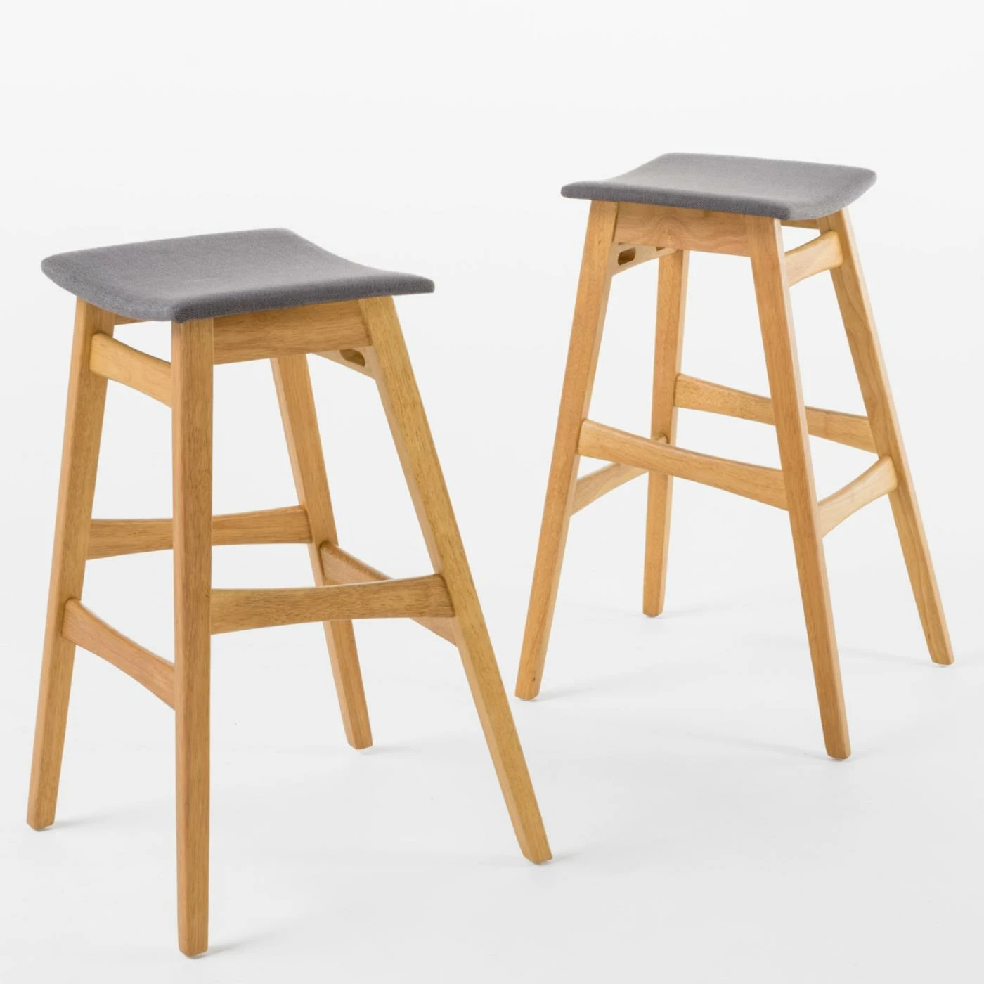 The HN Home Baron Mid-Century Modern Upholstered Bar Stools – Set of 2 provide a low-profile solution to your additional seating needs. The durable design and light finish of the wood bring a natural element to the room. Your choice of available fabrics ensures just the right look and makes these bar stools a must-have.