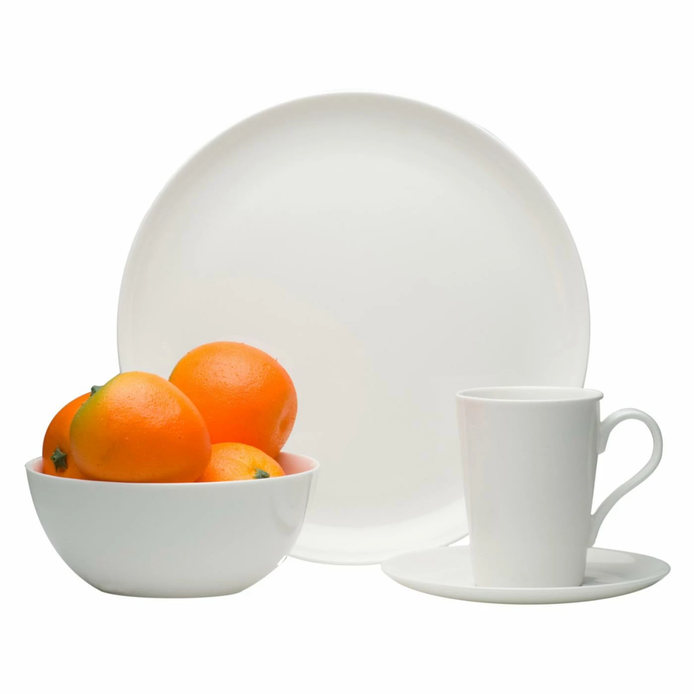 Guests or no guests, the Red Vanilla Pure Vanilla 16 pc. Coupe Dinner Set is just the right kind of setting for your space. High-quality bone china is used to craft the subtle and appealing style for each of the four settings. A conical mug, coupe dinner and salad plate, and bowl give you just what you need to serve breakfast, lunch, or dinner in a traditional or modern setting.